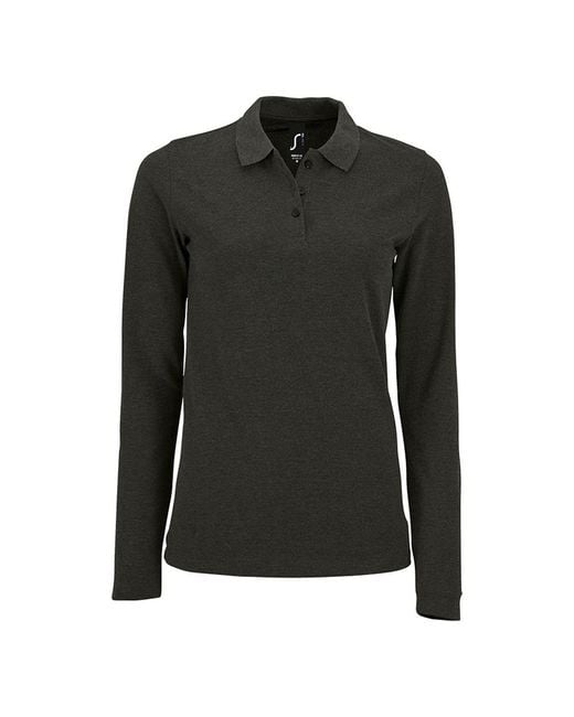 Women's Black Ladies Perfect Long Sleeve Pique Polo Shirt Marl) Cotton