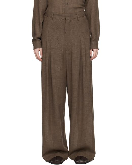 Wool serge trousers. · Check pattern throughout · High-rise · Belt loops · Four-pocket styling · Zip fly · Pleats at legs · Cupro satin lining Supplier color: Brown Colour: brown