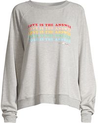 Spiritual Gangster's SG Rainbow Savasana Crew Neck is made for leisurely savasanas, sun salutations and stretching. Made from drapey hacci and featuring a retro rainbow stripe logo, this classic crew-neck sweatshirt looks as good as it feels. Rainbow stripe graphic. Crew neck. Relaxed, cosy fit. Long sleeves. Made in LA.  . Polyester/Viscose/Spandex tri-blend. Take care of your activewear by washing like fabrics and colours together in cold water, and avoiding fabric softener.