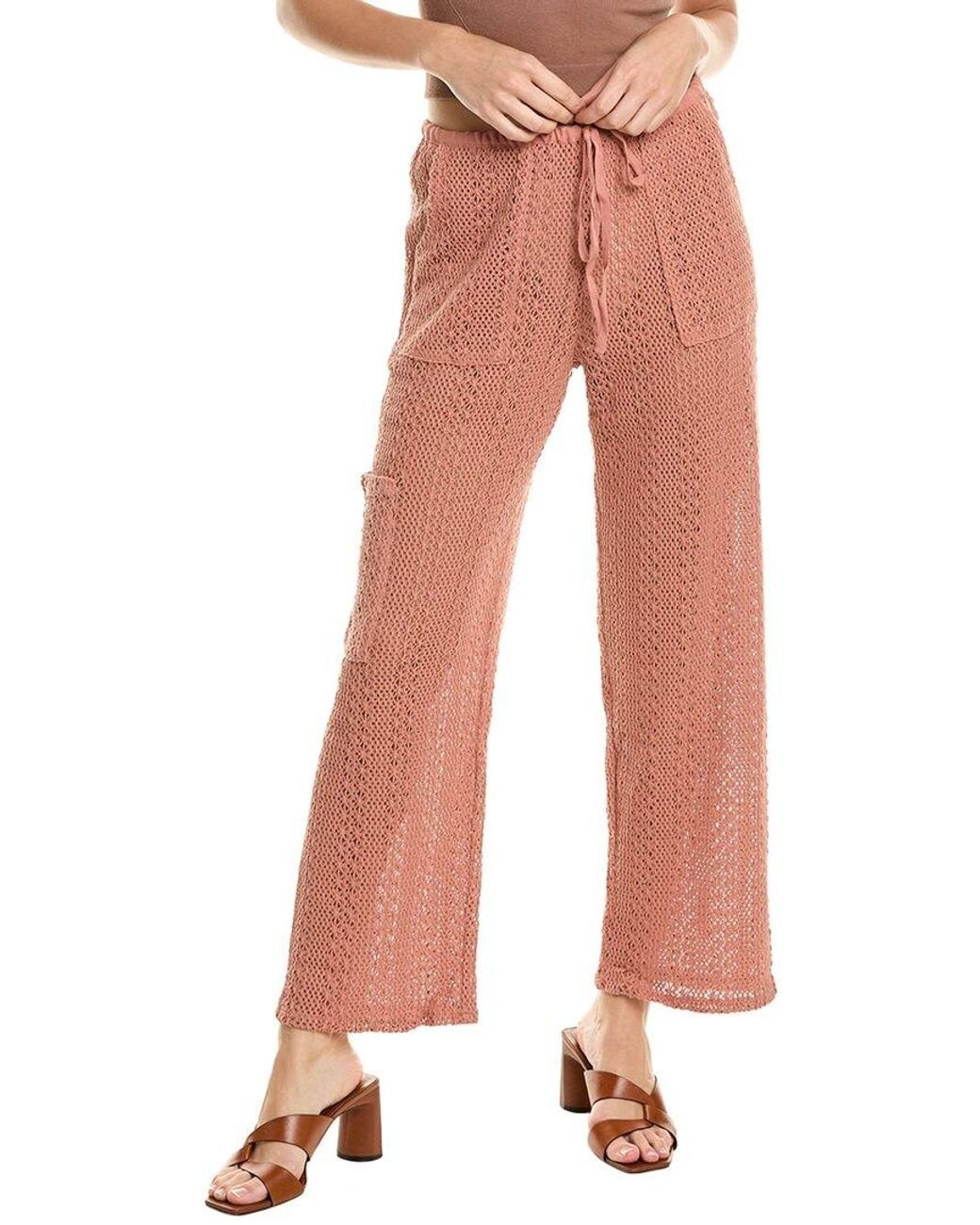 About the brand: Soft and comfortable pieces with an 'at home' feel. Finley Crochet Pant in teak with elasticized drawstring waist, four-pocket styling, and right cargo pocket Inseam approximately 29in Model is 5'9 and is wearing a size small. Measurements may vary slightly by size. 65% polyester, 35% cotton Machine wash Imported Colour: brown