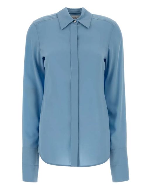 Blue classic collar long sleeves button cuffs button fastening box pleat at back Size: 42. Gender: Female. Material:Silk. Colour: blue