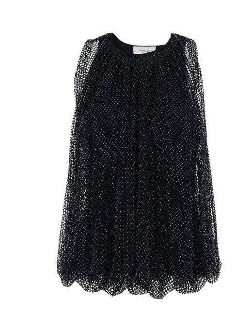 Women's Black Top With Mesh Design And All-Over Rhinestone Application