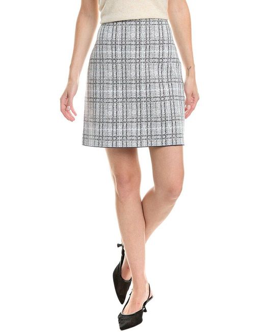About the brand: Luxurious knitwear that's effortlessly elegant. Pixelated Jacquard Wool-Blend Skirt in white and navy multicolor Approximately 19in from waist to hem Model is 5'9 and is wearing a size 4. Measurements may vary slightly by size. Center back zipper with hook-and-eye closure 59% cotton, 41% wool Dry clean only Imported