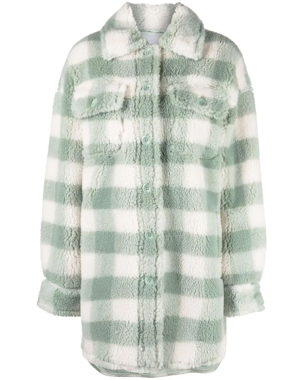 Check pattern cotton faux shearling spread collar front button fastening two chest flap pockets Size: 34. Gender: Female. Material:Polyester/Polyester/Wool/Cotton. Colour: green