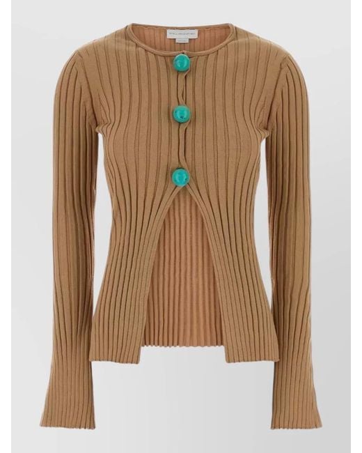 Long sleeves | Crew neck | Ribbed texture | Button front Colour: brown
