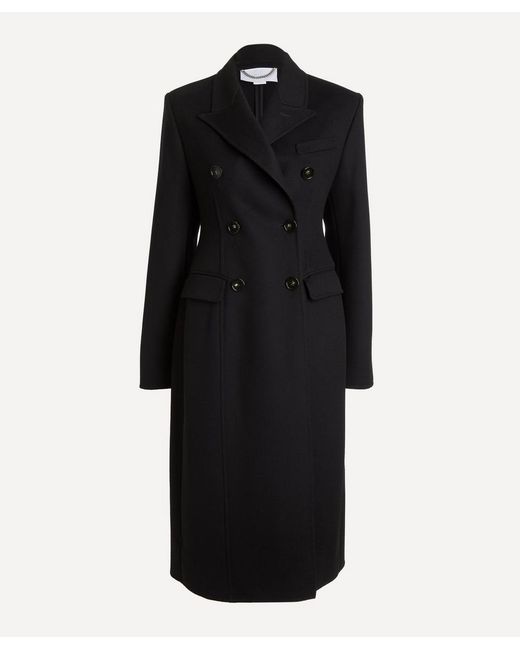 This black double-breasted wool tweed coat from Stella Mccartney is the perfect statement piece for modern outerwear. Tailored from double-faced wool, this double-breasted coat fuses heritage craftsmanship with contemporary attitude. Designed with peak lapels, a button fastening, and two front flap pockets, it's fitted at the waist for a defined, hour-glass silhouette. Colour: blue