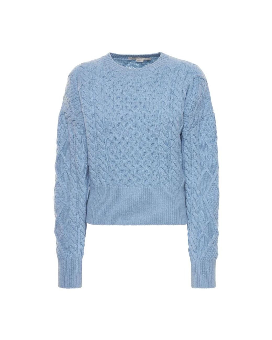Stella Mc Cartney jumper in a refined round-neck silhouette, finished in a delicate light-blue tone. Soft and warm, it’s designed for comfortable everyday wear and pairs easily with jeans or skirts. Key attributes: Light blue | Blue | Soft feel | Provides warmth | Round neckline | Long sleeves | Straight cut | Minimal detailing | Dimensions & fit: Straight cut | Modern fit | Composition & care: 100% Wv Colour: blue