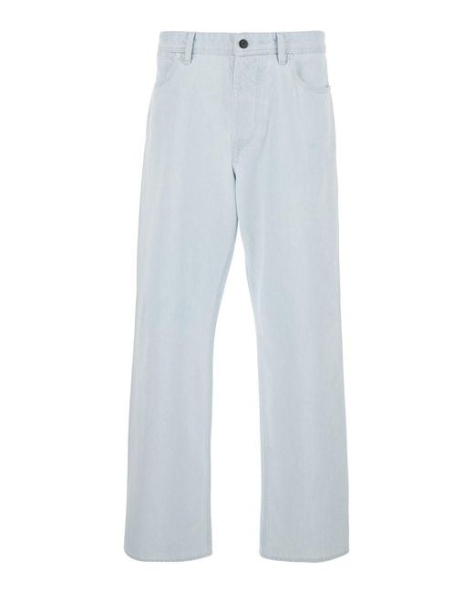 Men's Blue Jeans With Logo Patch On The Rear And Belt Loo