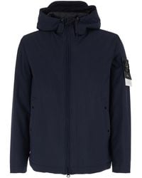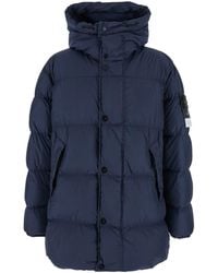 Stone Island Men's Blue Down Jacket With Drawstring Hood And Logo Patch On The Sleeve