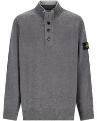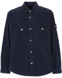 Stone Island Men's Black Button-Up Long-Sleeved Denim Shirt