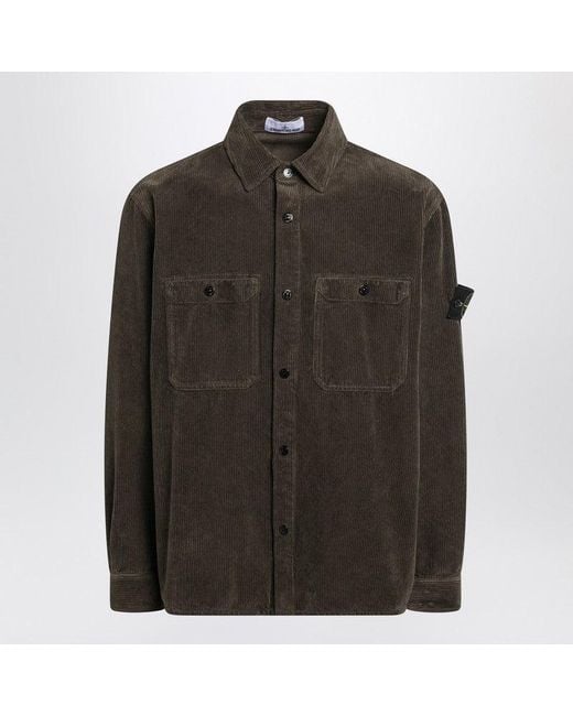 Stone Island military green cotton corduroy shirt featuring front button closure, long sleeves with buttoned cuffs (one with Compass logo patch), two buttoned chest pockets and straight hem.SpecificationValueBrandStone IslandAge GroupadultColorGreenMaterialCottonMade InTunisiaGenderMenSizeLSeasonFW25/26