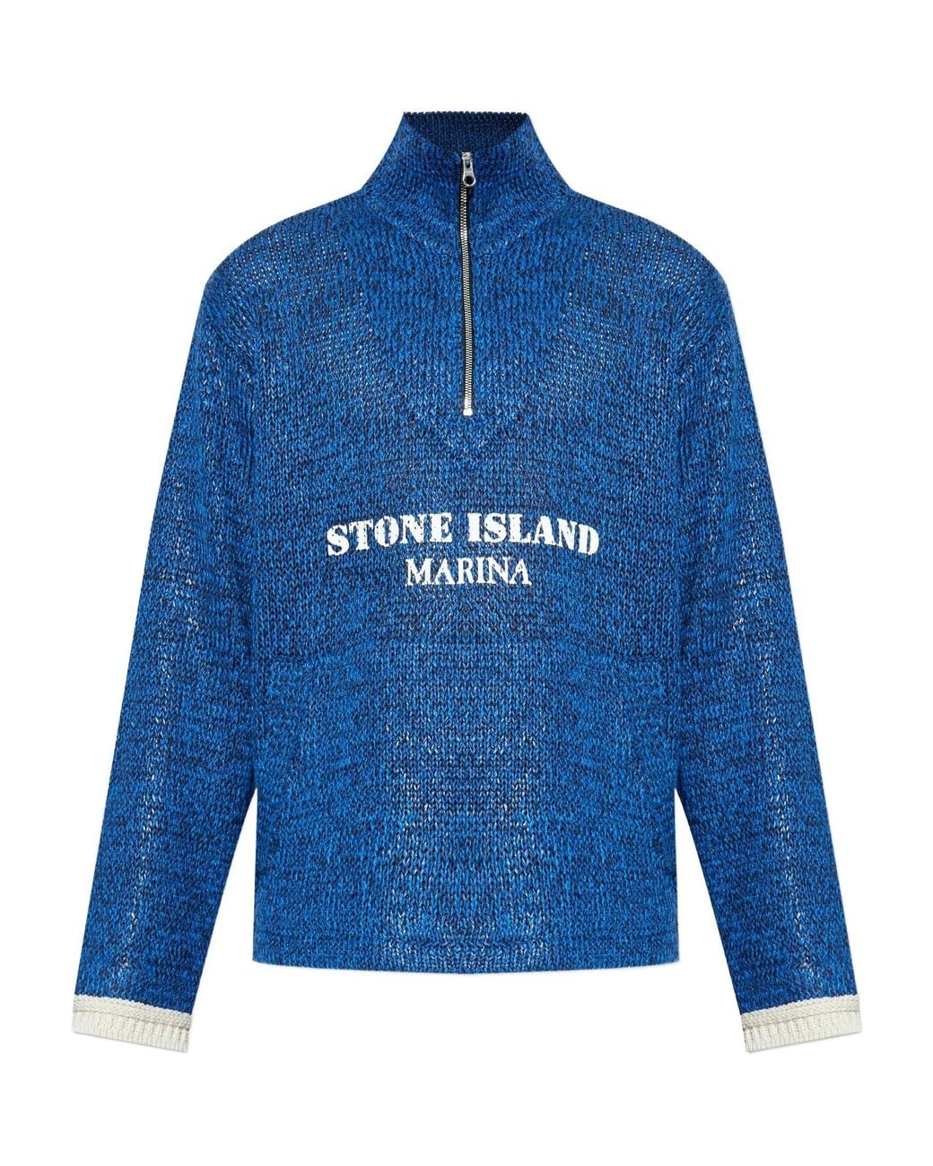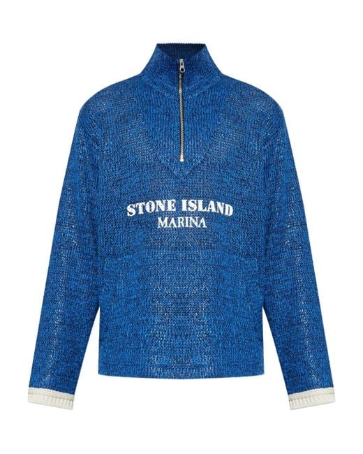 Stone Island logo-embroidered sweatshirt Linen/Flax Linen/Flax 65%, Cotton 23%, Polyester 12% Colour: blue