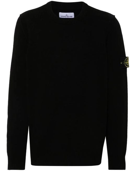 Black wool blend knitted construction crew neck long sleeves signature detachable Compass badge ribbed cuffs and hem straight hem Size: XL. Gender: Male. Material:Wool/Polyamide.