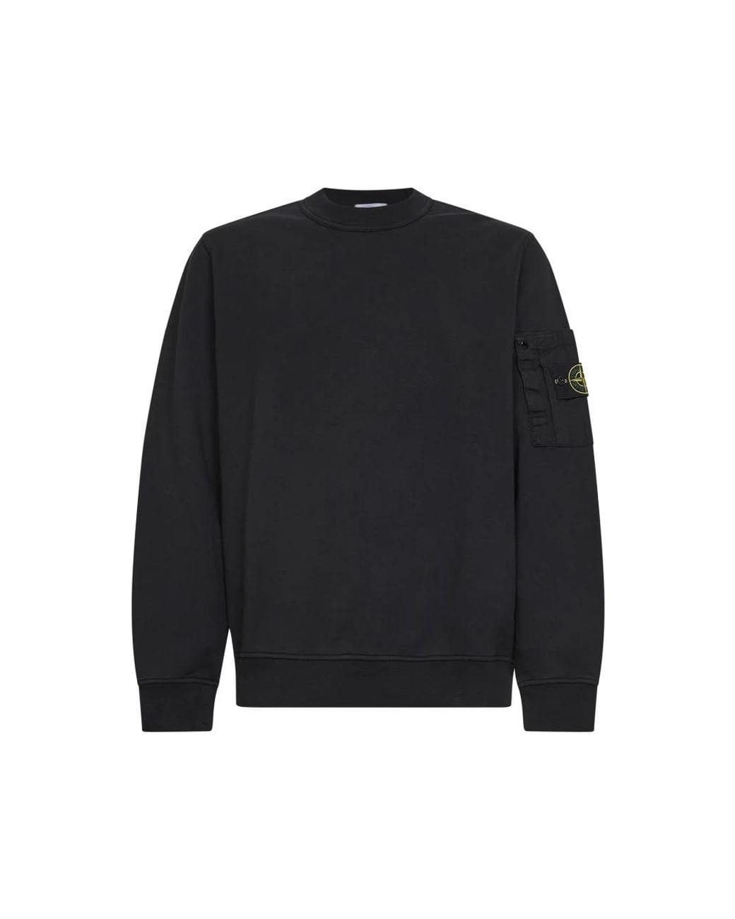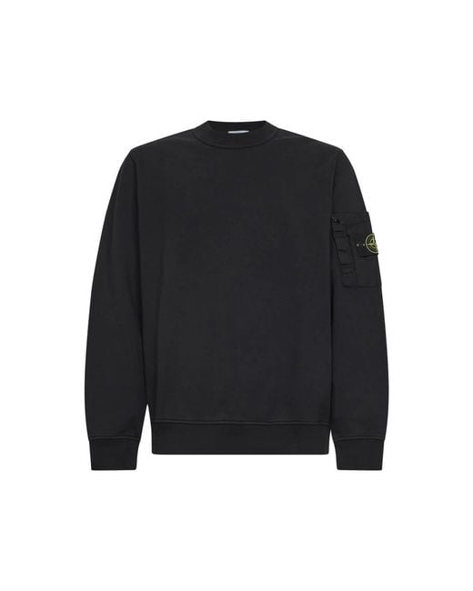 Stone Island Crewneck Sweatshirt pairs a midweight, garment-dyed cotton build with a ripstop sleeve pocket and the brand's signature badge. Designed for casual layering, it balances practical detailing with a clean ribbed finish. Key attributes: Black | Cotton | Midweight fabric | Garment-dyed finish | Ripstop patch pocket on left sleeve with hook-and-loop fastening, snap and loop | Elasticated ribbed cuffs and bottom band | Ribbed crewneck | Long sleeves | Pleat detail on sleeve pocket | Stone Island badge | Dimensions & fit: Regular fit | Composition & care: 100% Cotton | Machine wash cold. Colour: black