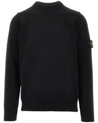 Stone Island Men's Grey Wool Crewneck Jumper With Logo Badge