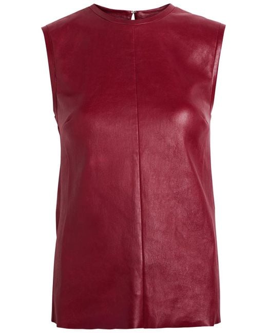 Info & Care Stouls stretch-leather top Round-neck, darts at bust, hook-fastening keyhole at back, pearlescent finish Slips on Fabric 1: 100% lambskin leather; fabric 2: 97% cotton, 2.4% lyocell, 0.6% elastane Machine wash; Size & Fit Length shoulder to hem: 23 inches/ 58.5cm Midweight Close fit Straight-cut hem Model is 5'9""/ 175cm and wears a size small Colour: red