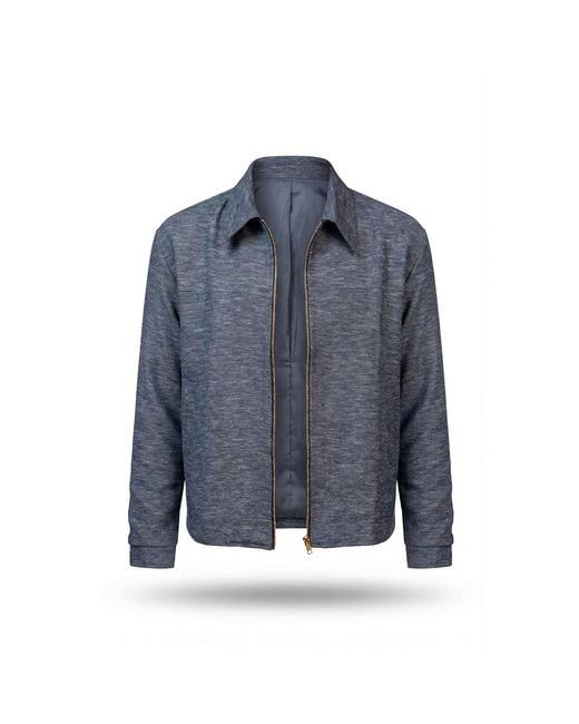 Men's Blue Linen Cotton Blend Jacket