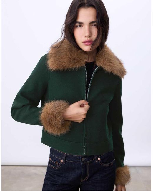 Women's Green Jacket With Faux Fur Detail