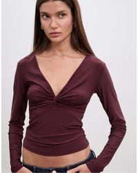 Tops by Stradivarius V-neck Long sleeves Knot front Slim fit. Polyester/Elastane. Colour: black