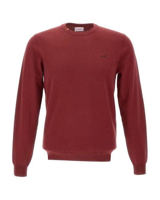 Men's Red Crew-Neck Ribbed-Cuff Jumper