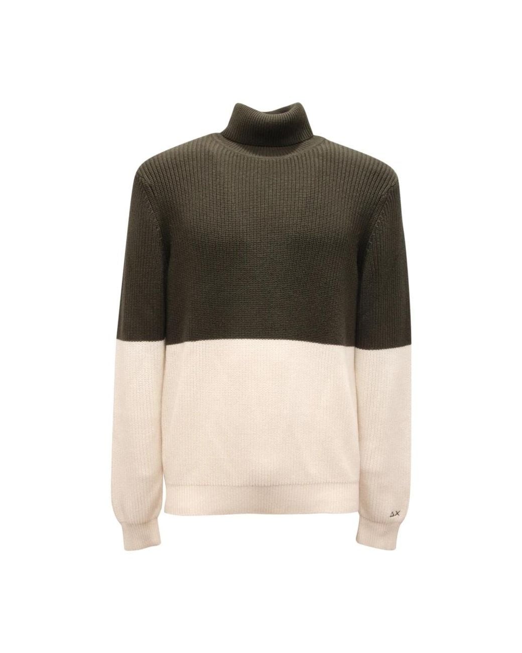Sun 68 Dolcevita Wool/Cotton Turtleneck Sweater is a classic layering piece that pairs a soft wool and cotton blend with a defined turtleneck. It features a clean silhouette with a strip detail at the bottom for subtle interest. Key attributes: Green | Verde | Wool and cotton | Turtleneck | Strip on bottom | Composition & care: Wool | Cotton