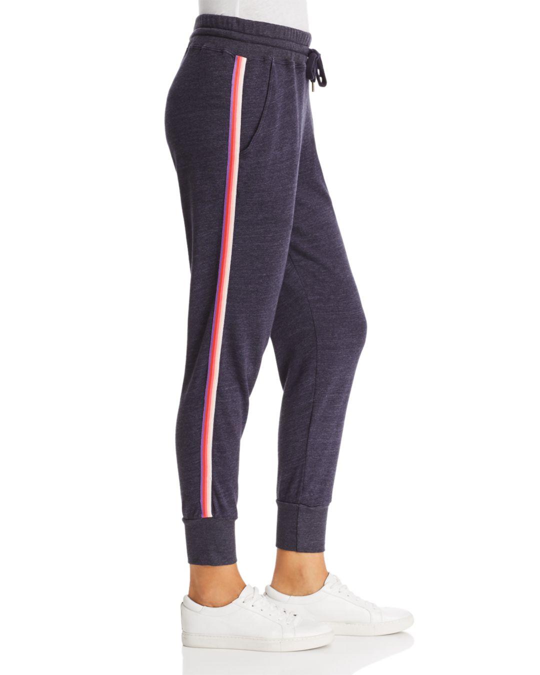 Go to Bloomingdale'sFits true to size, order your normal size. 10.75" rise, 27.75" inseam, based on a size 1/small. Model measurements: 5'10" height, 33.5" bust, 23.5" waist, 34.5" hips, wearing a size 1/small. Elasticized, rib-knit drawstring waist. Side slit pockets. Rainbow track stripes at sides. Rib-knit cuffs. Pull-on style. 50% polyester/38% cotton/12% rayon. Colour: blue