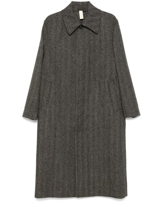Anthracite grey wool mélange effect front button fastening herringbone pattern oversized pointed collar long sleeves two side welt pockets central rear vent full lining internal pockets straight hem Size: 46. Gender: Male. Material:Wool. Colour: grey
