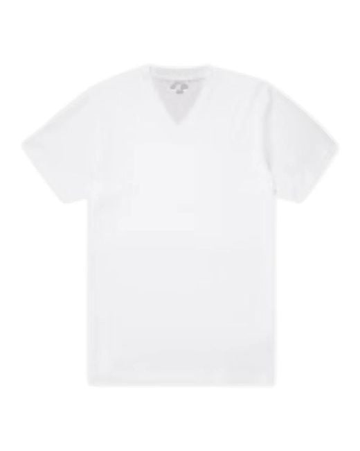 Sunspel Riviera V Neck T-Shirt — a midweight Supima cotton tee originally developed for Casino Royale. Clean V‑neck and durable, silky jersey make it a versatile layering staple for transitional seasons. Key attributes: White | Supima cotton | Midweight, twice-spun jersey | Soft, silky hand | High shape retention and durability | Layering-friendly | Easy-care handling | Versatile with denim or fine knits | V‑neck | Regular silhouette with slightly close-to-body drape | Minimal, logo-free styling | Dimensions & fit: Regular fit with a slightly body‑skimming appearance due to the midweight jersey. | Model: 1.90 m, 99 cm chest, wearing size M. | If between sizes: choose the smaller size for a more fitted look or the larger size for more room. | Composition & care: 100% Supima cotton | Machine wash gentle 30°C; do not tumble dry; dry cleanable; lay flat to dry; iron at low temperature. Colour: white