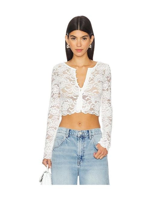 Superdown Elowen Top in White. Size L. Also in XXS, XS, S, M. superdown Elowen Top in White. Size XXS, XS, S, M. Self: 85% nylon 15% elastane Contrast: 95% polyester 5% elastane. Made in China. Hand wash. Front button closure. Lace fabric. Garment is intentionally sheer, undergarments will show through. Please note undergarment not included. SPDW-WS2024. SDS2654 F23. superdown is a contemporary label offering on-demand, on-trend, on-social apparel. Always on the pulse of the latest styles, superdown is the go-to for aspiring, trendy, fashion-loving babes who are #superdown for anything.