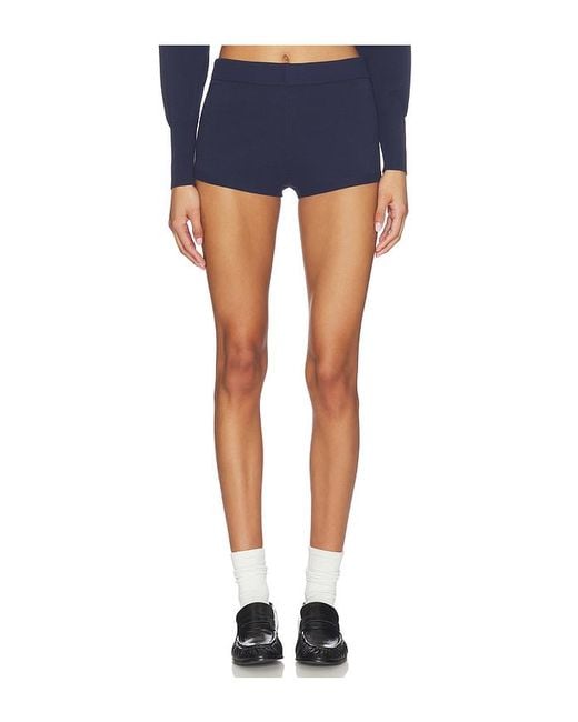 Superdown Jayella Knit Short in Navy. Size L. Also in XS, S, M. superdown Jayella Knit Short in Navy. Size XS, S, M. 75% viscose 15% nylon 10% elastane. Hand wash. Pull-on styling. Elasticized waistband. Ribbed trim. Lightweight jersey fabric. Item not sold as a set. Shorts measure approx 10 in length. SPDW-WF301. SDF10022 S26. superdown is a contemporary label offering on-demand, on-trend, on-social apparel. Always on the pulse of the latest styles, superdown is the go-to for aspiring, trendy, fashion-loving babes who are #superdown for anything.