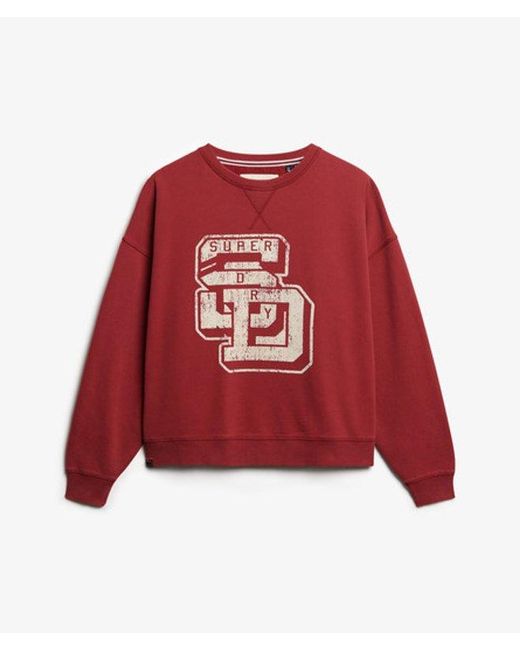 Women's Red Athletic Essentials Relaxed Flock Crew Sweatshirt