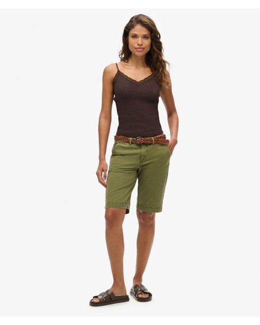 Slim fit - designed to fit closer to the body for a more tailored look Button and zip fastening with belt loops on the waistband Four external pockets finished with a signature patch on the back A truly versatile option, our Chino City Shorts have been expertly curated with a slim fit and pared-back design for a perfect, flattering look. Whether you're looking for a stylish upgrade or preparing for your next holiday, these shorts are a gorgeous addition crafted with you in mind. Colour: green