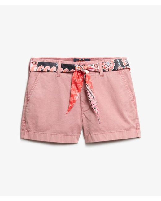 Slim fit - designed to fit closer to the body for a more tailored look Belt loops with button and zip fastening Four external pockets with a small signature tab on the back pocket Elegance in summer has never been so easy. Our Classic Chino Shorts have been designed with a removable patterned fabric belt, you can keep your outfits fun with the belt, or go for a more sophisticated look without the belt, either way, you'll look and feel great. Colour: pink