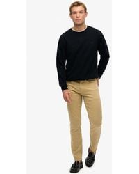 Go to SuperdryRelaxed fit - the classic Superdry fit. Not too slim, not too loose, just right. Go for your normal size Ribbed crew neckline with ribbed cuffs and hemline Signature tab on the sleeves