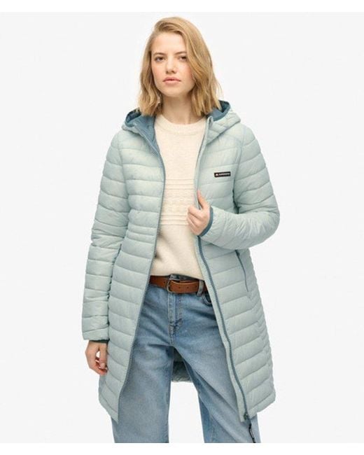 Women's Blue Hooded Fuji Lite Mid Length Padded Jacket