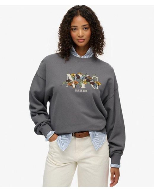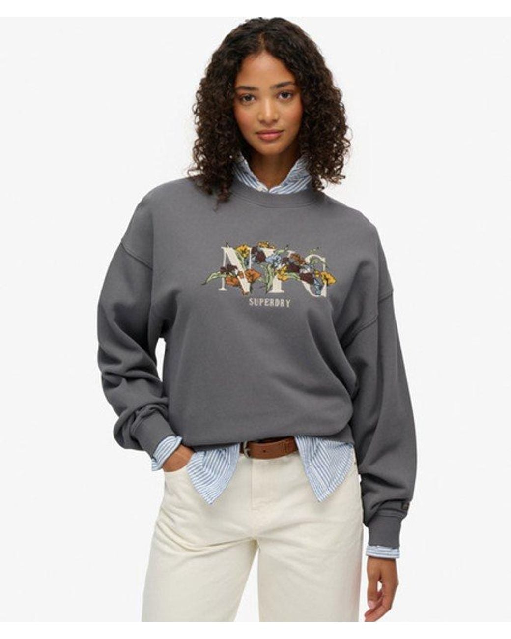 Women's Grey Night Garden Oversized Crew Sweatshirt
