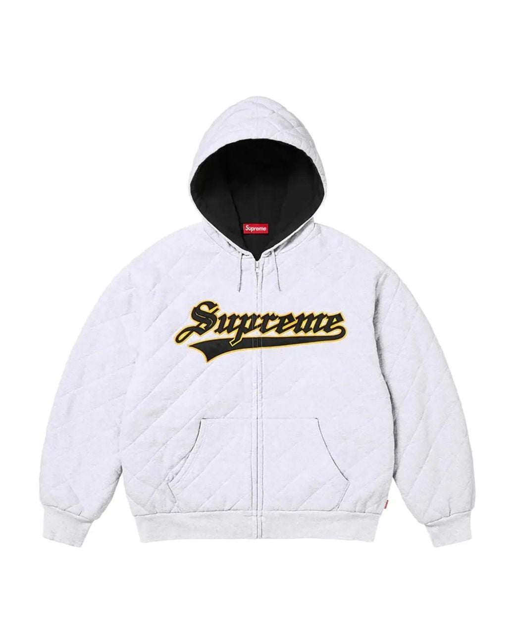 Grey quilted zip fastening hooded front pouch pockets embroidered logo Size: M. Gender: Male. Material:Fabric. Colour: white