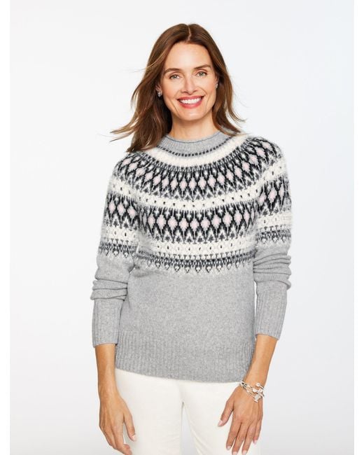 A versatile wardrobe staple. Our feel-good crewneck jumper is detailed with a season-ready Fair Isle pattern. Made with a rib knit trim. Nylon/Acyrlic/Wool. Colour: grey