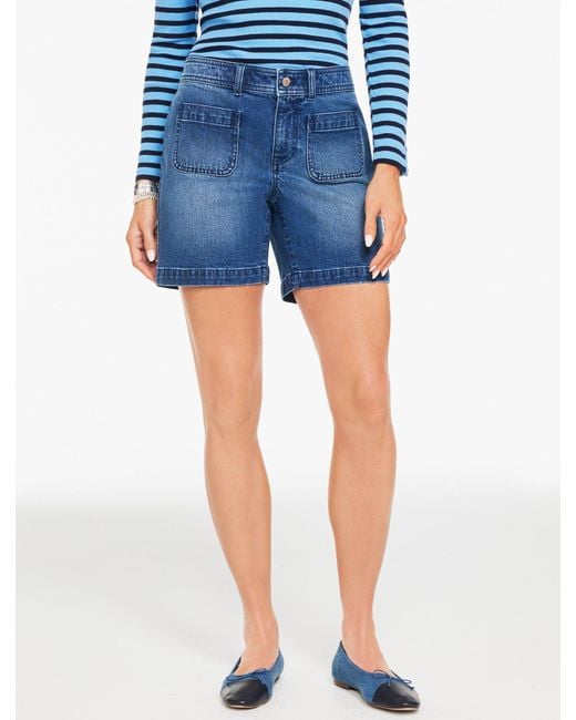 A tailored take on our classic denim shorts. Detailed with chic patch pockets at the front and back for utility-inspired charm. A top contender for your warm-weather wardrobe. Cotton/ Lyocell. Colour: blue