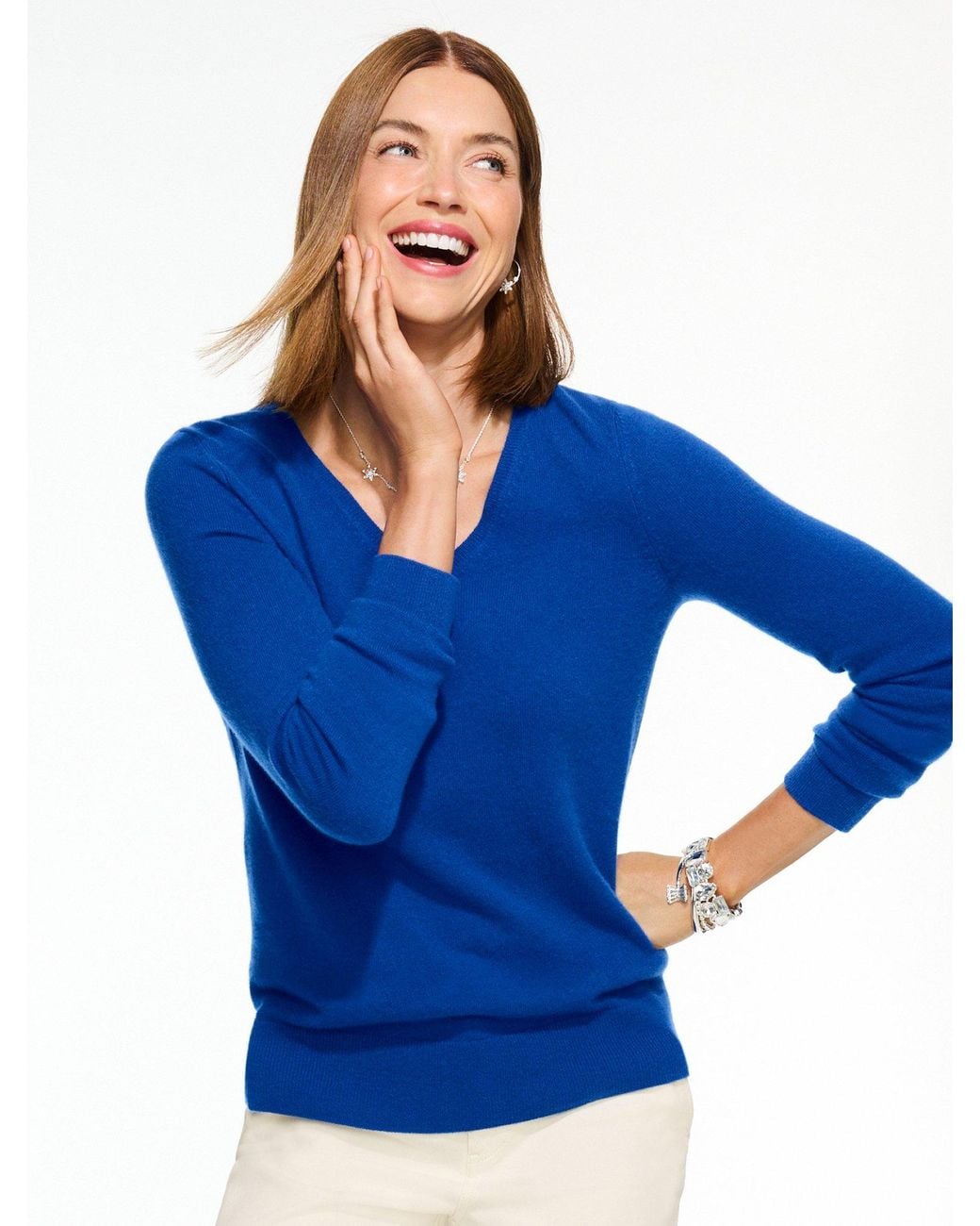 Just right for effortlessly pulled together looks. Our flattering V-neck jumper in luxuriously soft cashmere. Detailed with cosy rib knit trim. In rich, season-ready hues. Colour: blue
