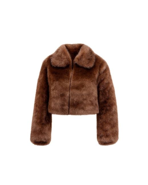 - Faux Fur Jacket With Collar And Zipper Closure Brwon