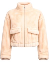 Tantra Spain Sl Women's Natural Neutrals Short Fur Bomber Jacket With Polo-Style Collar, Pockets And Zipper Ecru