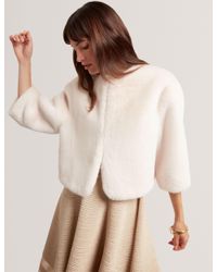 Go to SelfridgesTed Baker woven boucle jacket57% viscose, 39% cotton, 3% polyamide, 1% metallised fibres; lining: 100% viscose; sleeve lining: 100% polyesterSlips onRound neck, long sleeves, two pockets at chest, two pockets at the side,