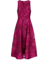 Signalling the start of summer, this romantic dress from Ted Baker is rendered in an A-line silhouette and adorned with floral print in a lustrous finish. Featuring a simple, sleeveless bodice that contrasts elegantly with the full midi skirt, enhance its fluid movement with white sandals and a lace clutch. Colour: pink