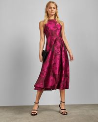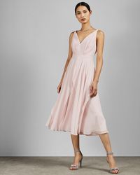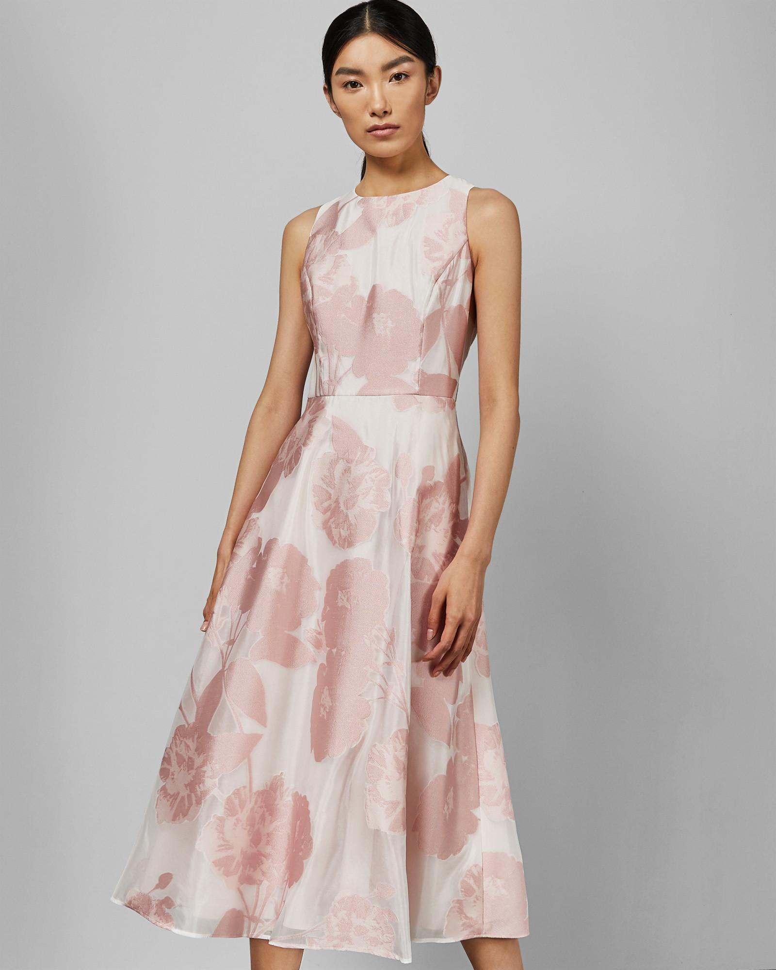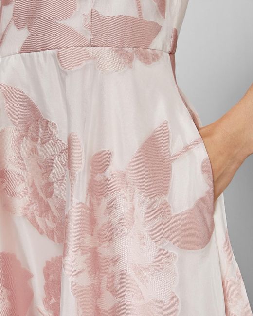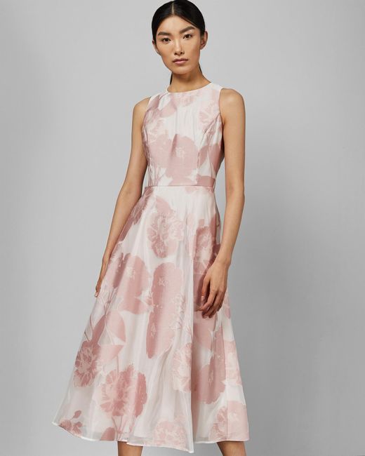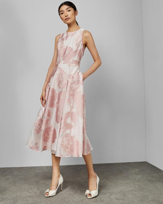 Sleeveless Floral Midi Dress WYLIEH in Dusky Pink, Ted Baker Women's Clothing. Shell: 100% Polyester; Lining: 97% Polyester, 3% Elastane.