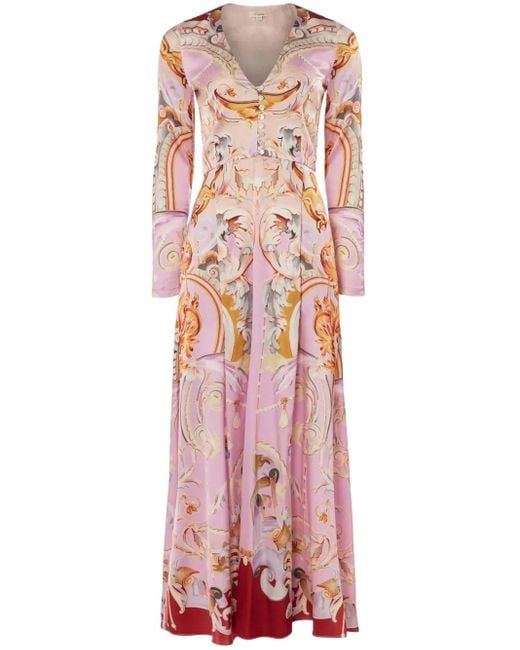 Women's Pink Graphic Print Collarless Silk Blend Coat