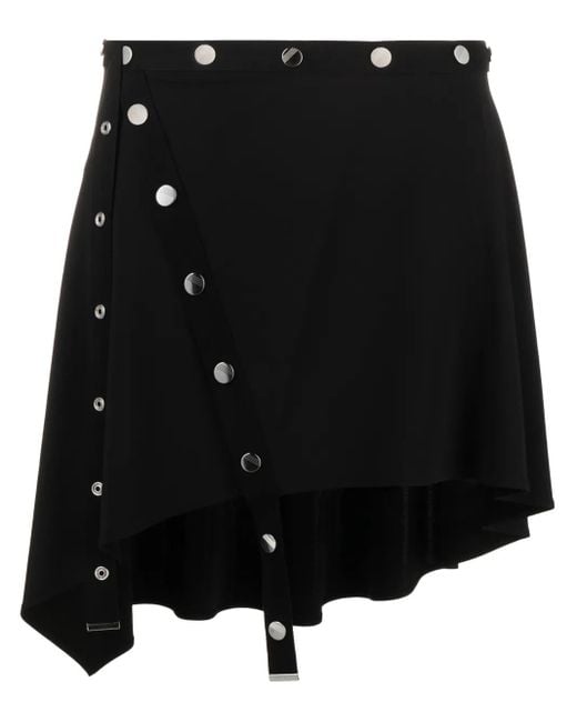 Black cotton blend stretch-jersey asymmetric design high-waisted side press-stud fastening unlined high-low hem Size: 42. Gender: Female. Material:other fibers/Acetate/Polyamide/Cotton/Polyester.