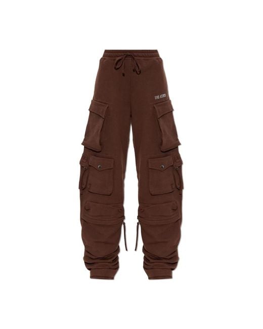 Trousers with pockets from THE Attico offer a sophisticated take on everyday elegance, highlighted by a deep brown shade and a thoughtfully designed cargo silhouette. Crafted from premium, soft cotton, they enchant with their delicate lightness and unrivaled wearing comfort. The design features a Loose, Wide CUT adjustable with an elastic waistband and drawstring at the waist and cuffs. An absolutely unique accent is provided by the spacious, wide cargo pockets—adorned with flaps and snap fastenings, seamlessly integrated into the minimalist character of these print-free trousers. A white “The Attico” logo embroidery is subtly placed above the left pocket, attesting to the prestigious origin of the product. WHY Should YOU BUY This Product? * Exceptional comfort and freedom of movement thanks to natural cotton. * Original design highlighting the independence and boldness of the modern woman. * Spacious, decorative pockets—a practical and fashionable styling detail. * Option to individually adjust the width of the waistband and cuffs. * Exclusive character and craftsmanship of the renowned fashion house The Attico. Model`s Measurements Height: 176cm Bust: 85cm Waist: 60cm Hips: 89cm Model is wearing size: 40 Colour: brown