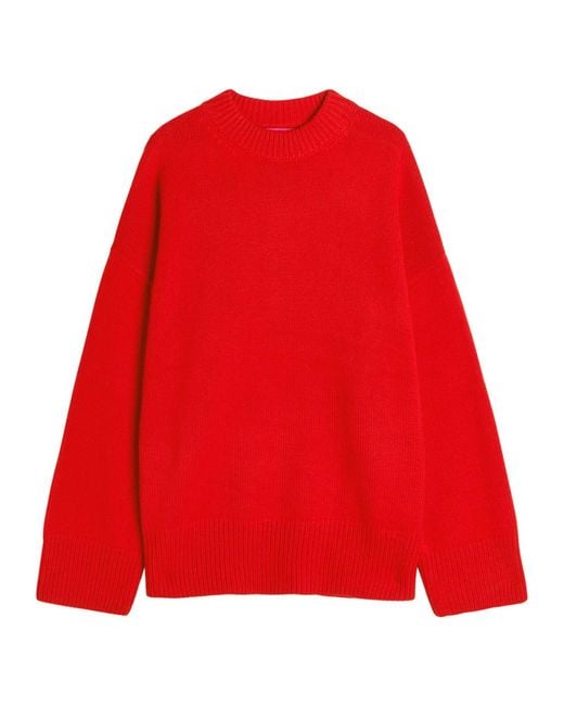 Info & Care The Elder Statesman cashmere;jumper Mock-neck, dropped shoulders,;ribbed trims Slips on 100% cashmere Dry clean Size & Fit Length shoulder to hem: 30 inches/ 76cm Midweight Relaxed fit, oversized style Model is 5'9""/ 175cm and wears a size small Colour: red