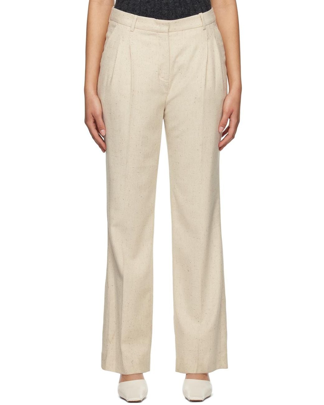 Straight-leg stretch viscose and wool-blend twill trousers. · Belt loops · Three-pocket styling · Zip-fly · Pleats at front waistband · Central crease at front and back legs · Partial plain-woven lining Supplier color: Linen